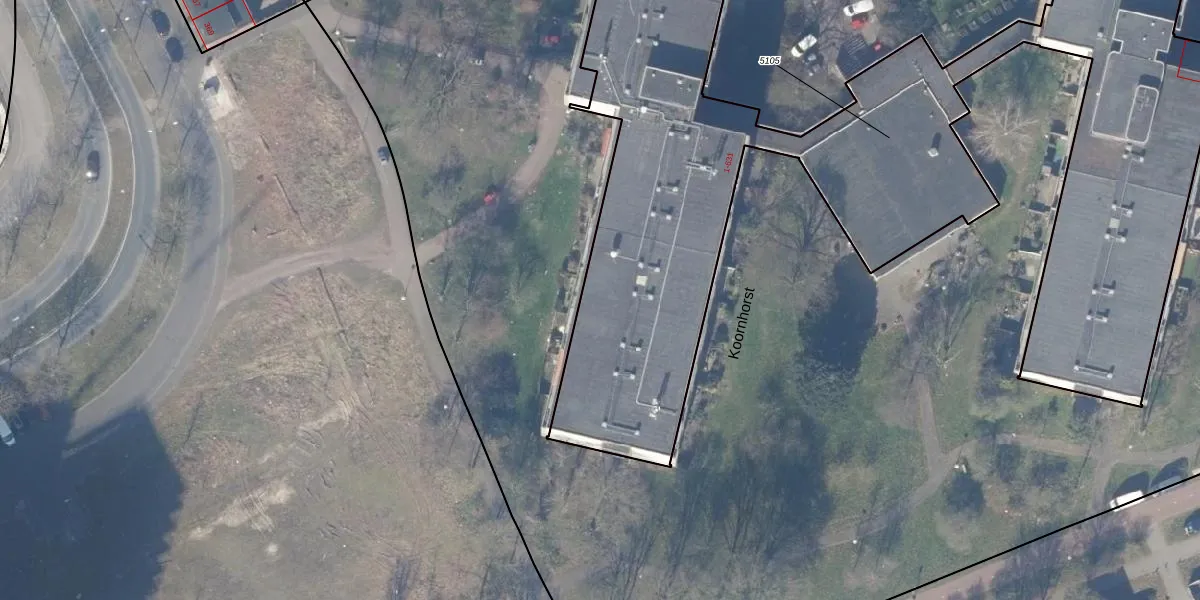 Het perceel waarop Koornhorst 7 staat heeft een oppervlakte van 5615 m². Dit is een zeer groot perceel. De perceeloppervlakte wordt geregistreerd door het Kadaster. Gedetailleerde informatie over de maten van dit perceel kunt u vinden in het rapport Kadastrale kaart met maatvoering van Koornhorst 7.