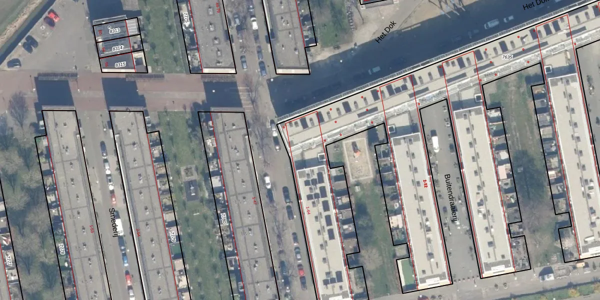 Het perceel waarop Koperslagerij 32 staat heeft een oppervlakte van 8289 m². Dit is een zeer groot perceel. De perceeloppervlakte wordt geregistreerd door het Kadaster. Gedetailleerde informatie over de maten van dit perceel kunt u vinden in het rapport Kadastrale kaart met maatvoering van Koperslagerij 32.