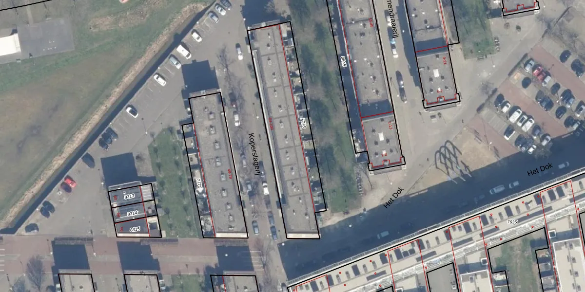 Het perceel waarop Koperslagerij 66 staat heeft een oppervlakte van 1075 m². Dit is een zeer groot perceel. De perceeloppervlakte wordt geregistreerd door het Kadaster. Gedetailleerde informatie over de maten van dit perceel kunt u vinden in het rapport Kadastrale kaart met maatvoering van Koperslagerij 66.