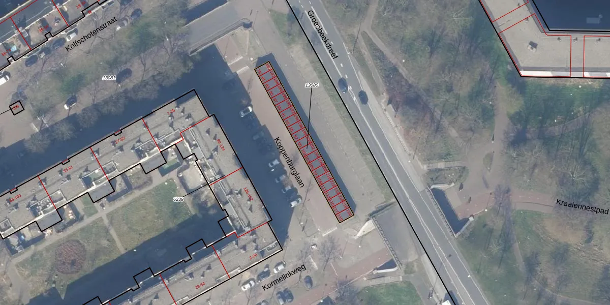 Koppenburglaan 101 is gelegen op kadastraal perceel WPK02L13080. Deze kadastrale aanduiding is uniek en wordt gebruikt door het Kadaster om eigendomsrechten en andere zakelijke rechten vast te leggen. Het perceel maakt onderdeel uit van de kadastrale gemeente Weesperkarspel.