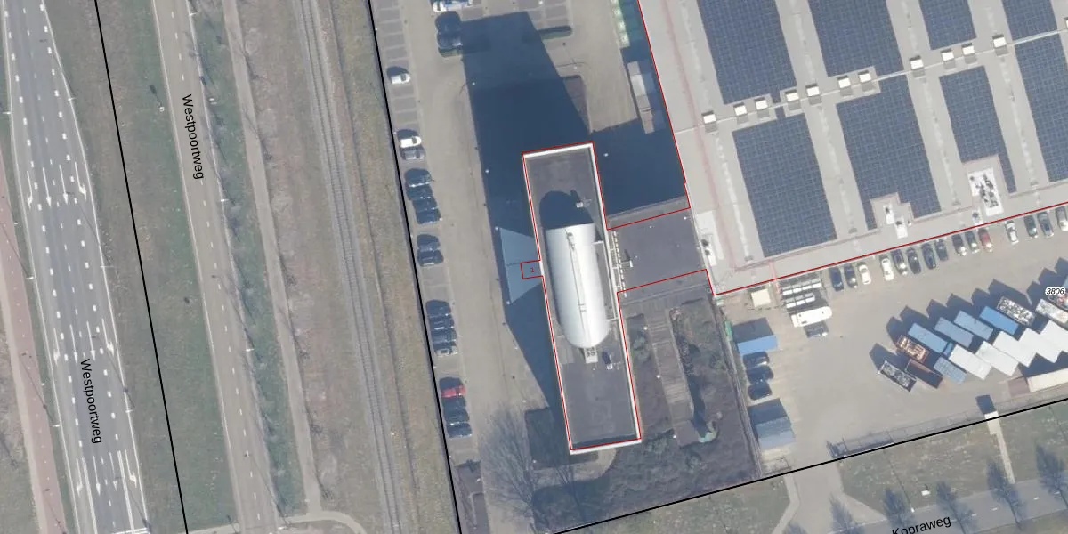 Het perceel waarop Kopraweg 1 staat heeft een oppervlakte van 2,8 ha. Dit is een zeer groot perceel. De perceeloppervlakte wordt geregistreerd door het Kadaster. Gedetailleerde informatie over de maten van dit perceel kunt u vinden in het rapport Kadastrale kaart met maatvoering van Kopraweg 1.
