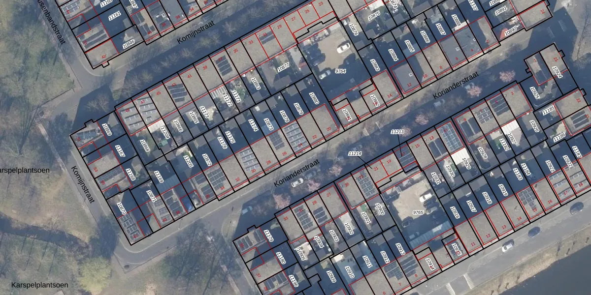 Korianderstraat 24 is gelegen op kadastraal perceel WPK02L10878. Deze kadastrale aanduiding is uniek en wordt gebruikt door het Kadaster om eigendomsrechten en andere zakelijke rechten vast te leggen. Het perceel maakt onderdeel uit van de kadastrale gemeente Weesperkarspel.
