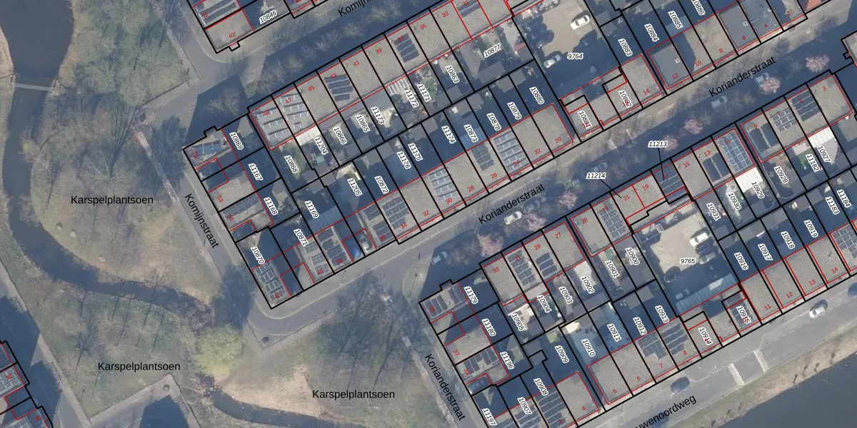 Korianderstraat 32 is gelegen op kadastraal perceel WPK02L11176. Deze kadastrale aanduiding is uniek en wordt gebruikt door het Kadaster om eigendomsrechten en andere zakelijke rechten vast te leggen. Het perceel maakt onderdeel uit van de kadastrale gemeente Weesperkarspel.