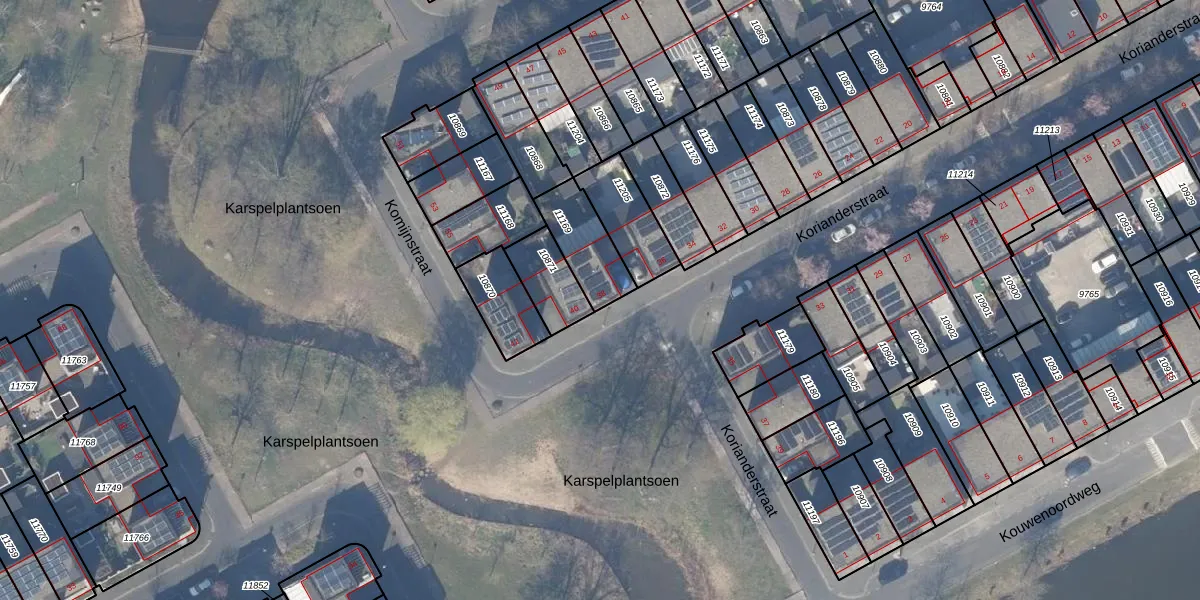 Het perceel waarop Korianderstraat 38 staat heeft een oppervlakte van 175 m². Dit is een middelgroot perceel. De perceeloppervlakte wordt geregistreerd door het Kadaster. Gedetailleerde informatie over de maten van dit perceel kunt u vinden in het rapport Kadastrale kaart met maatvoering van Korianderstraat 38.