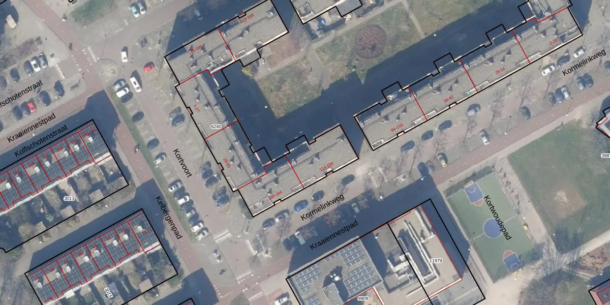 Kormelinkweg 156 is gelegen op kadastraal perceel WPK02L6240. Deze kadastrale aanduiding is uniek en wordt gebruikt door het Kadaster om eigendomsrechten en andere zakelijke rechten vast te leggen. Het perceel maakt onderdeel uit van de kadastrale gemeente Weesperkarspel.