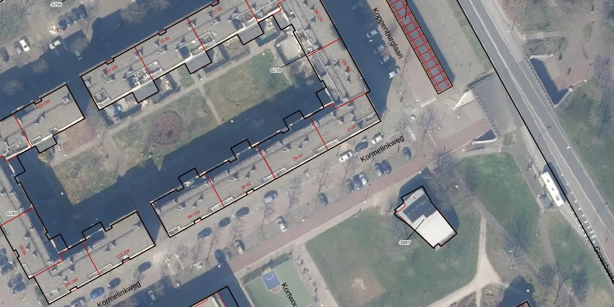 Kormelinkweg 38 is gelegen op kadastraal perceel WPK02L6239. Deze kadastrale aanduiding is uniek en wordt gebruikt door het Kadaster om eigendomsrechten en andere zakelijke rechten vast te leggen. Het perceel maakt onderdeel uit van de kadastrale gemeente Weesperkarspel.