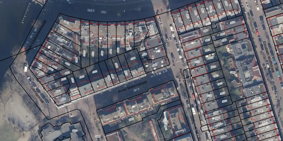Het adres is gelegen op perceel 4304 in de sectie T en de kadastrale gemeente Amsterdam. De kadastrale aanduiding is aldus ASD16-T-4304. De gemiddelde perceelgrootte in Amsterdam is 245,33 m². Dit perceel is kleiner: de perceeloppervlakte bedraagt 185 m². Het kleinste perceel in de kadastrale gemeente is 0 m² groot. De grootste perceeloppervlakte is 3,3 ha. Op het perceel zijn 8 adressen aanwezig. De huidige grenzen van het perceel zijn digitaal in de Basisregistratie Kadaster (BRK) geregistreerd op 12-01-2007.