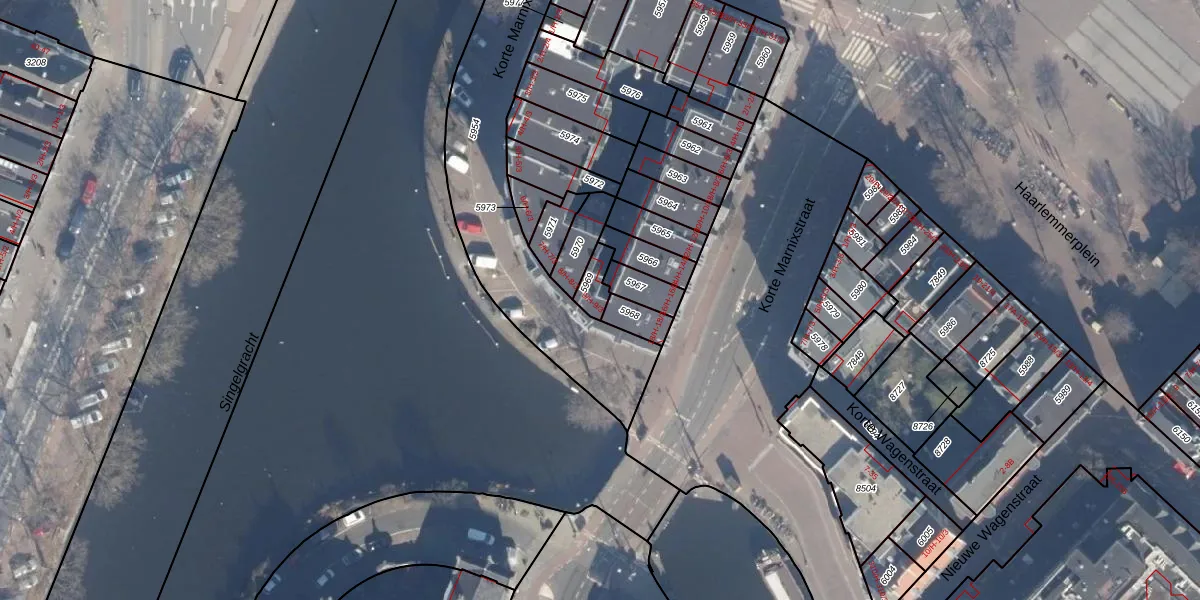 Het perceel waarop Korte Marnixkade 9-1 staat heeft een oppervlakte van 50 m². Dit is een klein perceel. De perceeloppervlakte wordt geregistreerd door het Kadaster. Gedetailleerde informatie over de maten van dit perceel kunt u vinden in het rapport Kadastrale kaart met maatvoering van Korte Marnixkade 9-1.