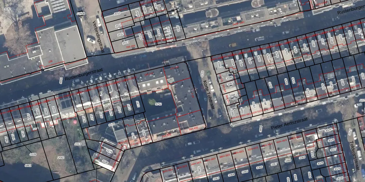 Het adres is gelegen op perceel 9752 in de sectie V en de kadastrale gemeente Amsterdam. De kadastrale aanduiding is aldus ASD18-V-9752. De gemiddelde perceeloppervlakte in de kadastrale gemeente Amsterdam is 558,8 m². Dit perceel is met zijn 1160 m² dus groter dan gemiddeld. Het kleinste perceel in de kadastrale gemeente is 0 m² groot. De grootste perceeloppervlakte is 12,5 ha. Op het perceel zijn 50 adressen aanwezig. De laatste wijziging in het de Basisregistratie Kadaster (BRK) was op 09-08-2006.