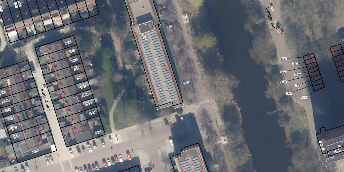 Het perceel waarop Korte Water 182 staat heeft een oppervlakte van 1274 m². Dit is een zeer groot perceel. De perceeloppervlakte wordt geregistreerd door het Kadaster. Gedetailleerde informatie over de maten van dit perceel kunt u vinden in het rapport Kadastrale kaart met maatvoering van Korte Water 182.