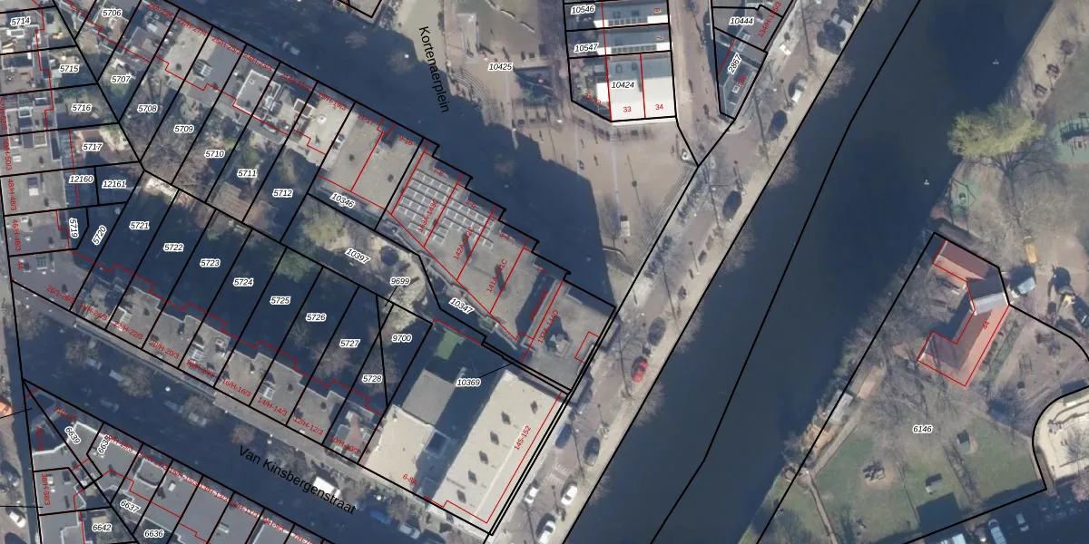 Het perceel waarop Kortenaerplein 2 staat heeft een oppervlakte van 835 m². Dit is een groot perceel. De perceeloppervlakte wordt geregistreerd door het Kadaster. Gedetailleerde informatie over de maten van dit perceel kunt u vinden in het rapport Kadastrale kaart met maatvoering van Kortenaerplein 2.