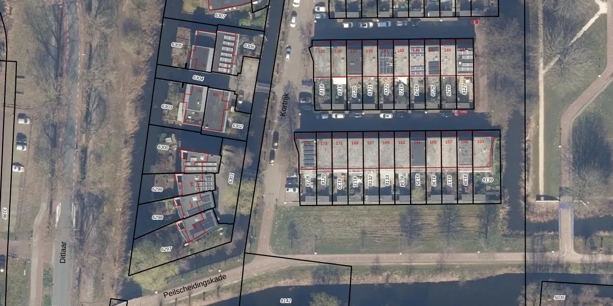 Het perceel waarop Kortrijk 175 staat heeft een oppervlakte van 144 m². Dit is een middelgroot perceel. De perceeloppervlakte wordt geregistreerd door het Kadaster. Gedetailleerde informatie over de maten van dit perceel kunt u vinden in het rapport Kadastrale kaart met maatvoering van Kortrijk 175.