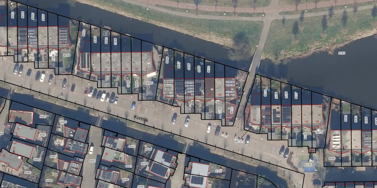 Het perceel waarop Kortrijk 33 staat heeft een oppervlakte van 171 m². Dit is een middelgroot perceel. De perceeloppervlakte wordt geregistreerd door het Kadaster. Gedetailleerde informatie over de maten van dit perceel kunt u vinden in het rapport Kadastrale kaart met maatvoering van Kortrijk 33.