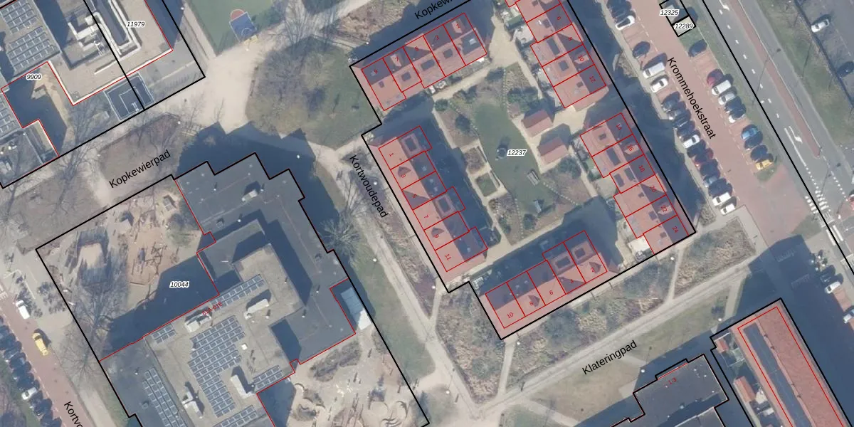 Het perceel waarop Kortwoudepad 7 staat heeft een oppervlakte van 4042 m². Dit is een zeer groot perceel. De perceeloppervlakte wordt geregistreerd door het Kadaster. Gedetailleerde informatie over de maten van dit perceel kunt u vinden in het rapport Kadastrale kaart met maatvoering van Kortwoudepad 7.