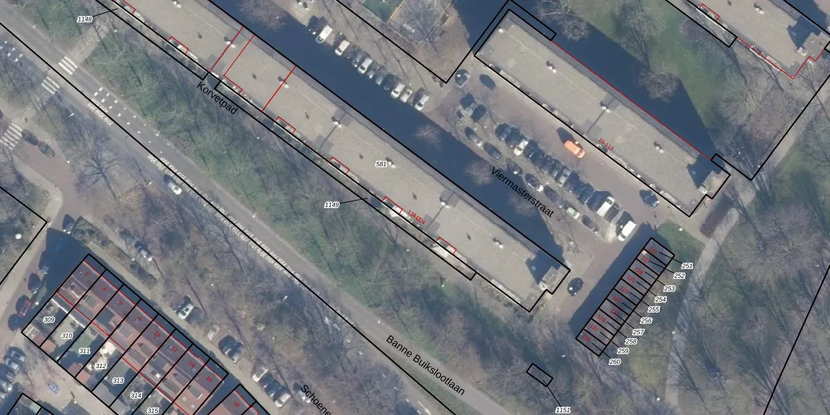 Het perceel waarop Korvetpad 9 staat heeft een oppervlakte van 2280 m². Dit is een zeer groot perceel. De perceeloppervlakte wordt geregistreerd door het Kadaster. Gedetailleerde informatie over de maten van dit perceel kunt u vinden in het rapport Kadastrale kaart met maatvoering van Korvetpad 9.