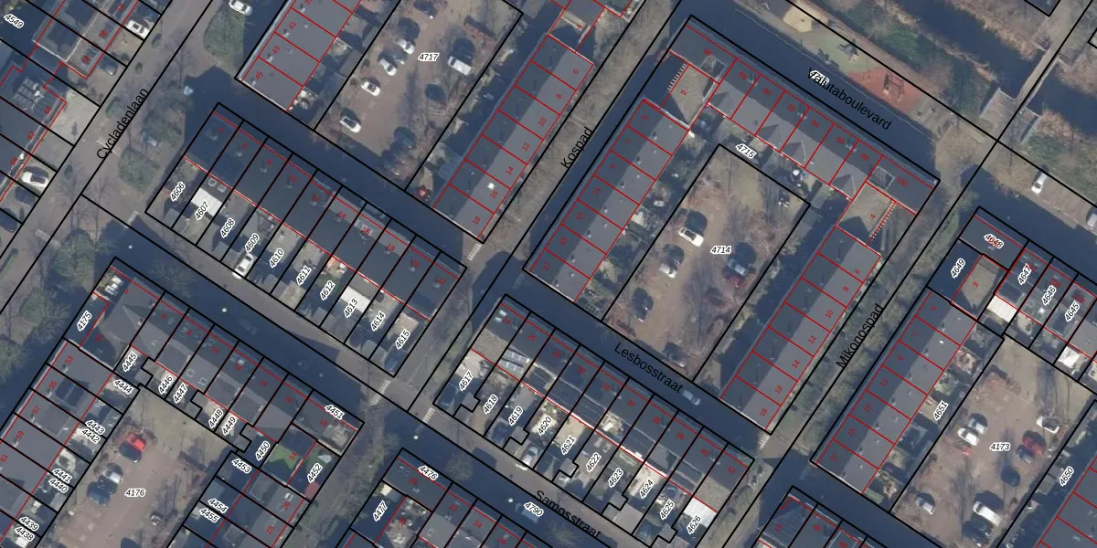 Het perceel waarop Kospad 17 staat heeft een oppervlakte van 2258 m². Dit is een zeer groot perceel. De perceeloppervlakte wordt geregistreerd door het Kadaster. Gedetailleerde informatie over de maten van dit perceel kunt u vinden in het rapport Kadastrale kaart met maatvoering van Kospad 17.