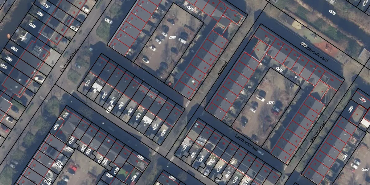 Het perceel waarop Kospad 18 staat heeft een oppervlakte van 2062 m². Dit is een zeer groot perceel. De perceeloppervlakte wordt geregistreerd door het Kadaster. Gedetailleerde informatie over de maten van dit perceel kunt u vinden in het rapport Kadastrale kaart met maatvoering van Kospad 18.