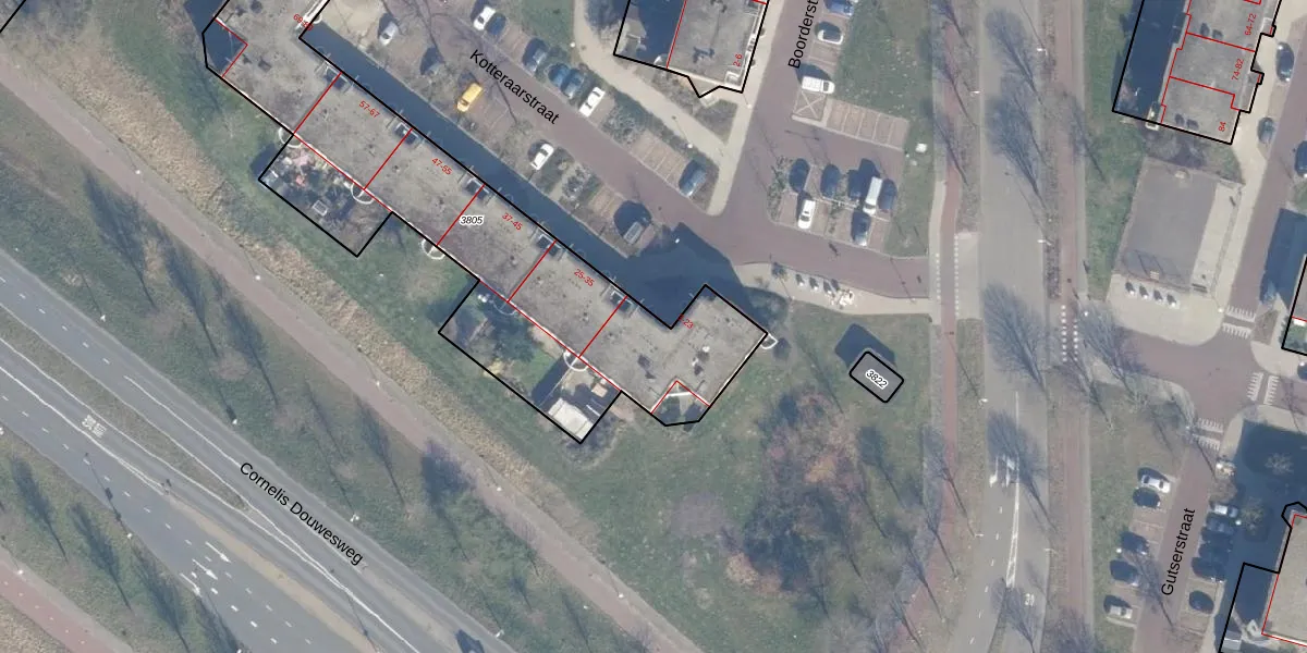 Het perceel waarop Kotteraarstraat 23 staat heeft een oppervlakte van 1870 m². Dit is een zeer groot perceel. De perceeloppervlakte wordt geregistreerd door het Kadaster. Gedetailleerde informatie over de maten van dit perceel kunt u vinden in het rapport Kadastrale kaart met maatvoering van Kotteraarstraat 23.