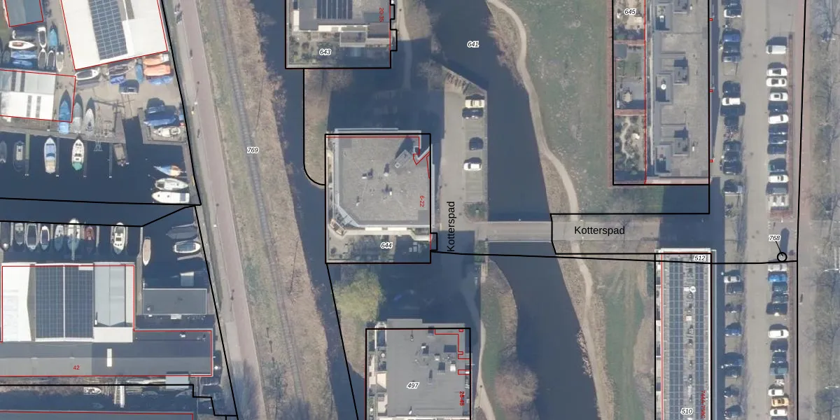 Kotterspad 13 is gelegen op kadastraal perceel ASD25AD644. Deze kadastrale aanduiding is uniek en wordt gebruikt door het Kadaster om eigendomsrechten en andere zakelijke rechten vast te leggen. Het perceel maakt onderdeel uit van de kadastrale gemeente Amsterdam.