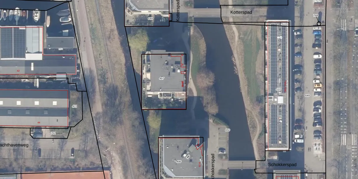 Het perceel waarop Kotterspad 30 staat heeft een oppervlakte van 769 m². Dit is een groot perceel. De perceeloppervlakte wordt geregistreerd door het Kadaster. Gedetailleerde informatie over de maten van dit perceel kunt u vinden in het rapport Kadastrale kaart met maatvoering van Kotterspad 30.