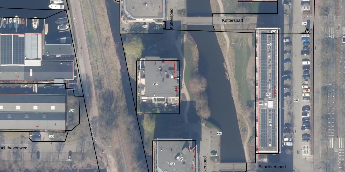 Het perceel waarop Kotterspad 48 staat heeft een oppervlakte van 769 m². Dit is een groot perceel. De perceeloppervlakte wordt geregistreerd door het Kadaster. Gedetailleerde informatie over de maten van dit perceel kunt u vinden in het rapport Kadastrale kaart met maatvoering van Kotterspad 48.