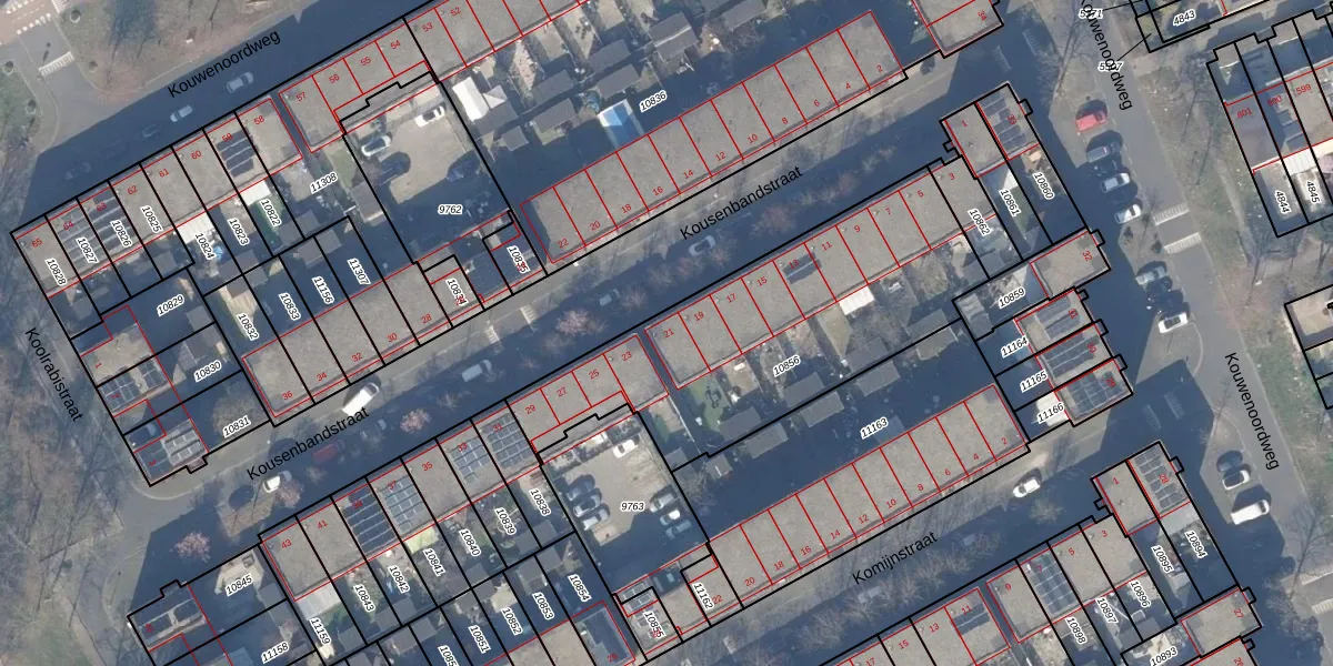 Kousenbandstraat 21 is gelegen op kadastraal perceel WPK02L10856. Deze kadastrale aanduiding is uniek en wordt gebruikt door het Kadaster om eigendomsrechten en andere zakelijke rechten vast te leggen. Het perceel maakt onderdeel uit van de kadastrale gemeente Weesperkarspel.