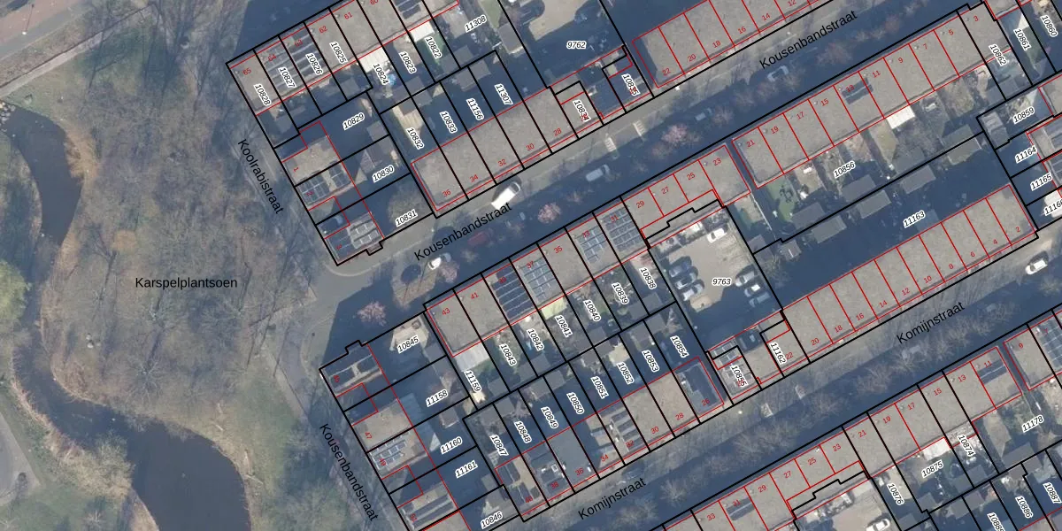 Kousenbandstraat 37 is gelegen op kadastraal perceel WPK02L10841. Deze kadastrale aanduiding is uniek en wordt gebruikt door het Kadaster om eigendomsrechten en andere zakelijke rechten vast te leggen. Het perceel maakt onderdeel uit van de kadastrale gemeente Weesperkarspel.