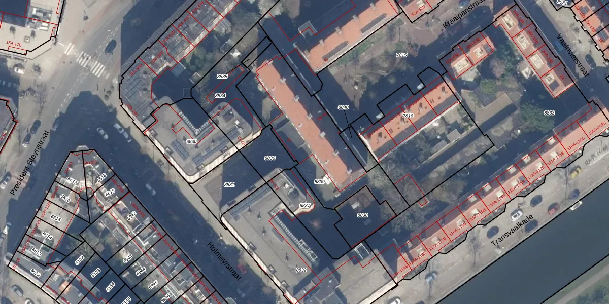 Het perceel waarop het adres ligt is ASD19-W-8839. De afkorting 'ASD19' staat voor kadastrale gemeente Amsterdam. De gemiddelde perceelgrootte in Amsterdam is 1563,05 m². Dit perceel is kleiner: de perceeloppervlakte bedraagt 1088 m². De grootste perceeloppervlakte in de kadastrale gemeente is 17,9 ha. De kleinste oppervlakte bedraagt 0 m². Er zijn 13 adressen aanwezig op het perceel. In de Basisregistratie Kadaster (BRK) werden de grenzen van het perceel geregistreerd op 11-09-2013.