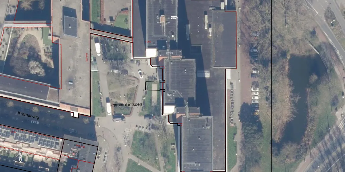 Het perceel waarop Kramatplantsoen 101-L staat heeft een oppervlakte van 9687 m². Dit is een zeer groot perceel. De perceeloppervlakte wordt geregistreerd door het Kadaster. Gedetailleerde informatie over de maten van dit perceel kunt u vinden in het rapport Kadastrale kaart met maatvoering van Kramatplantsoen 101-L.