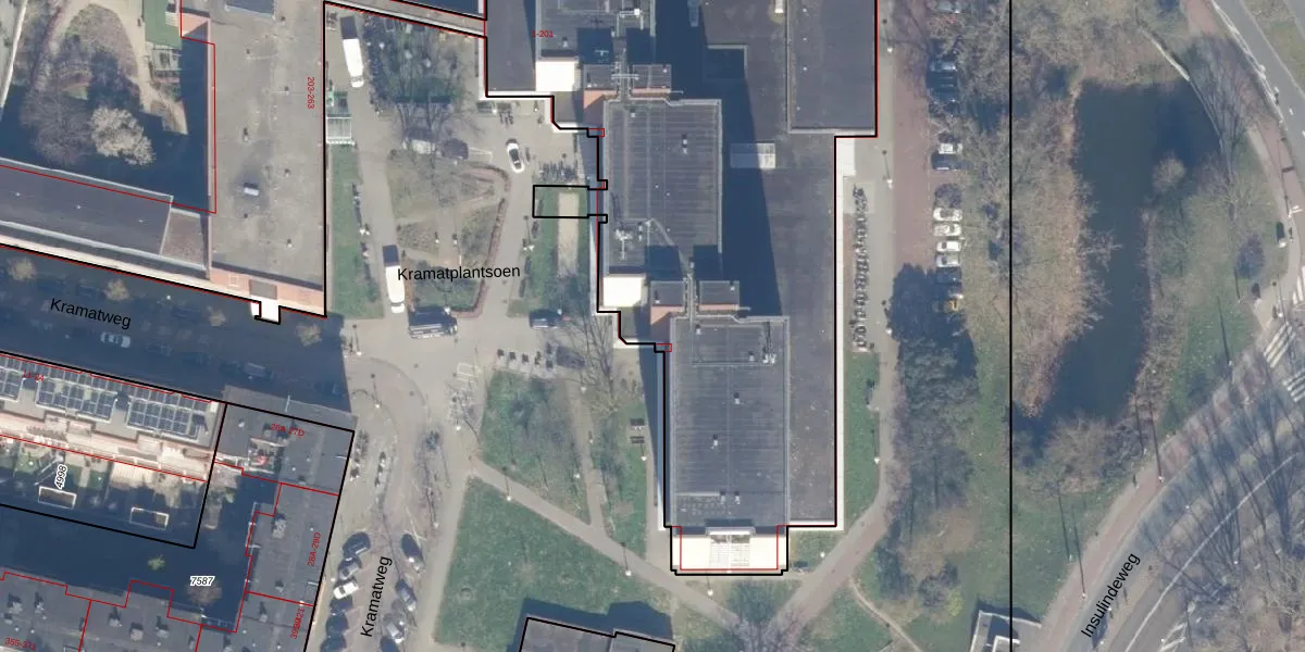 Het perceel waarop Kramatplantsoen 38 staat heeft een oppervlakte van 9687 m². Dit is een zeer groot perceel. De perceeloppervlakte wordt geregistreerd door het Kadaster. Gedetailleerde informatie over de maten van dit perceel kunt u vinden in het rapport Kadastrale kaart met maatvoering van Kramatplantsoen 38.