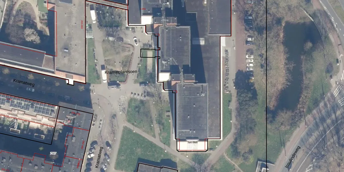 Het perceel waarop Kramatplantsoen 44 staat heeft een oppervlakte van 9687 m². Dit is een zeer groot perceel. De perceeloppervlakte wordt geregistreerd door het Kadaster. Gedetailleerde informatie over de maten van dit perceel kunt u vinden in het rapport Kadastrale kaart met maatvoering van Kramatplantsoen 44.