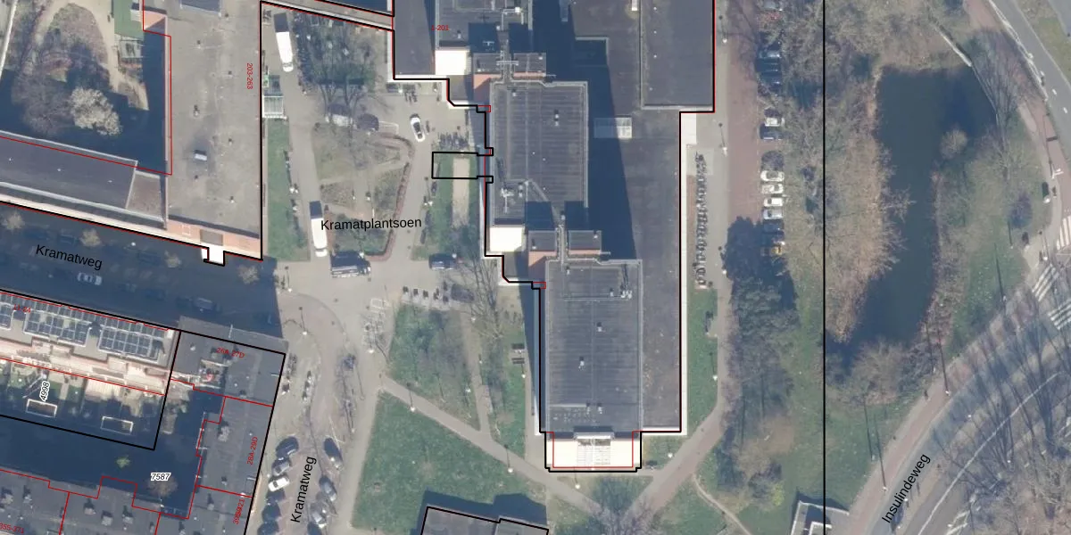 Het perceel waarop Kramatplantsoen 50 staat heeft een oppervlakte van 9687 m². Dit is een zeer groot perceel. De perceeloppervlakte wordt geregistreerd door het Kadaster. Gedetailleerde informatie over de maten van dit perceel kunt u vinden in het rapport Kadastrale kaart met maatvoering van Kramatplantsoen 50.