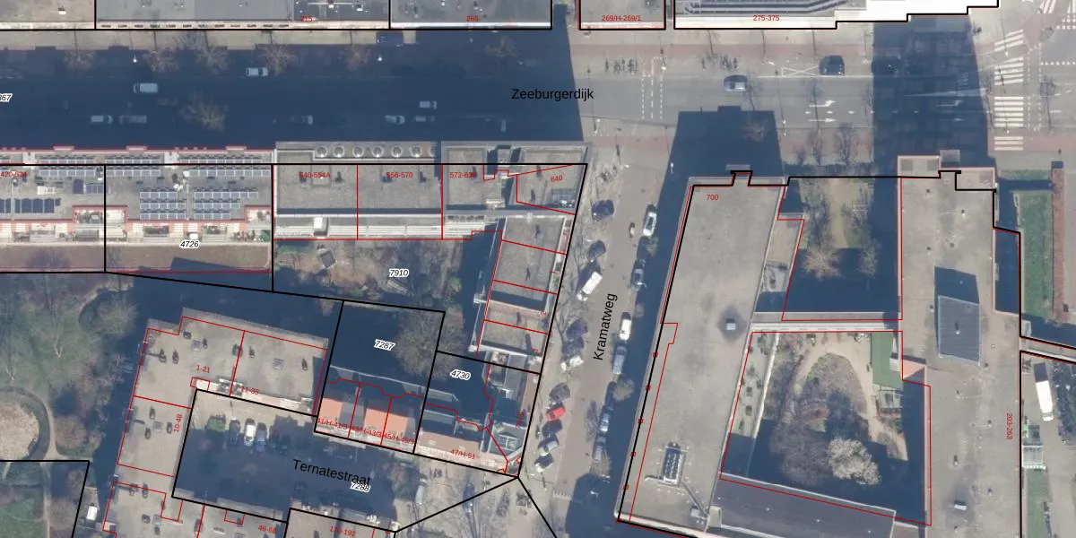 Kramatweg 1 is gelegen op kadastraal perceel ASD19W7910. Deze kadastrale aanduiding is uniek en wordt gebruikt door het Kadaster om eigendomsrechten en andere zakelijke rechten vast te leggen. Het perceel maakt onderdeel uit van de kadastrale gemeente Amsterdam.