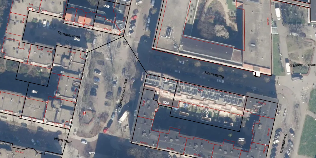 Kramatweg 14-F is gelegen op kadastraal perceel ASD19W7470. Deze kadastrale aanduiding is uniek en wordt gebruikt door het Kadaster om eigendomsrechten en andere zakelijke rechten vast te leggen. Het perceel maakt onderdeel uit van de kadastrale gemeente Amsterdam.