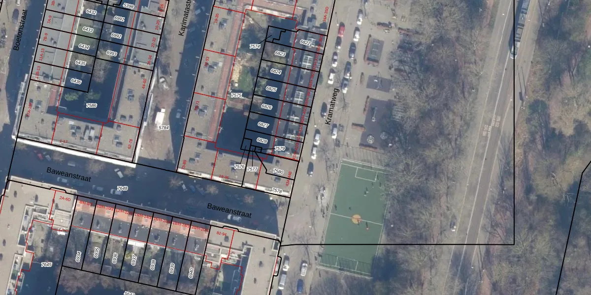 Het adres is gelegen op perceel 6828 in de sectie W en de kadastrale gemeente Amsterdam. De kadastrale aanduiding is aldus ASD19-W-6828. Het perceel is kleiner dan gemiddeld in Amsterdam. Het perceel is 108 m² groot, terwijl het gemiddelde ligt op 1563,05 m². Het grootste perceel in de kadastrale gemeente is 17,9 ha. Het kleinste perceel heeft een oppervlakte van 0 m². Op het perceel zijn 4 adressen aanwezig. In de Basisregistratie Kadaster (BRK) werden de grenzen van het perceel geregistreerd op 05-02-2007.