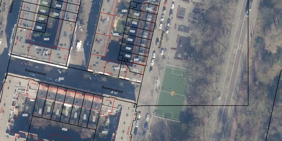 Kramatweg 43-B is gelegen op kadastraal perceel ASD19W7580. Deze kadastrale aanduiding is uniek en wordt gebruikt door het Kadaster om eigendomsrechten en andere zakelijke rechten vast te leggen. Het perceel maakt onderdeel uit van de kadastrale gemeente Amsterdam.