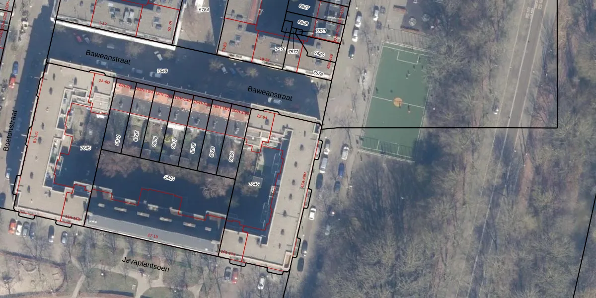Het adres is gelegen op perceel 7646 in de sectie W en de kadastrale gemeente Amsterdam. De kadastrale aanduiding is aldus ASD19-W-7646. Het perceel is 1290 m² groot. Dat is kleiner dan de gemiddelde perceeloppervlakte in Amsterdam, dat op 1563,61 m² ligt. Het grootste perceel in de kadastrale gemeente is 17,9 ha. Het kleinste perceel heeft een oppervlakte van 0 m². Er zijn 40 adressen aanwezig op het perceel. De huidige grenzen van het perceel zijn digitaal in de Basisregistratie Kadaster (BRK) geregistreerd op 05-02-2007.