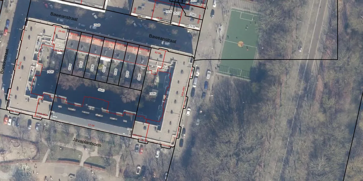 Het adres is gelegen op perceel 7646 in de sectie W en de kadastrale gemeente Amsterdam. De kadastrale aanduiding is aldus ASD19-W-7646. Het perceel is 1290 m² groot. Dat is kleiner dan de gemiddelde perceeloppervlakte in Amsterdam, dat op 1563,61 m² ligt. Het grootste perceel in de kadastrale gemeente is 17,9 ha. Het kleinste perceel heeft een oppervlakte van 0 m². Op het perceel zijn 40 adressen aanwezig. In de Basisregistratie Kadaster (BRK) werden de grenzen van het perceel geregistreerd op 05-02-2007.