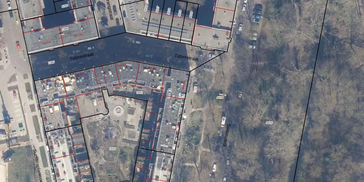 Het adres is gelegen op perceel 7653 in de sectie W en de kadastrale gemeente Amsterdam. De kadastrale aanduiding is aldus ASD19-W-7653. Het perceel is met 2402 m² relatief groot. Het gemiddelde ligt in de kadastrale gemeente Amsterdam op 1563,05 m². Het kleinste perceel in de kadastrale gemeente is 0 m² groot. De grootste perceeloppervlakte is 17,9 ha. Er zijn 83 adressen aanwezig op het perceel. De huidige grenzen van het perceel zijn digitaal in de Basisregistratie Kadaster (BRK) geregistreerd op 06-11-2006.