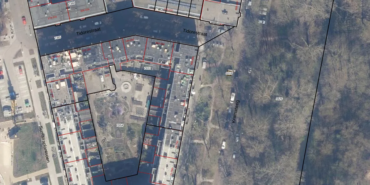 Het adres is gelegen op perceel 7653 in de sectie W en de kadastrale gemeente Amsterdam. De kadastrale aanduiding is aldus ASD19-W-7653. Het perceel is met 2402 m² relatief groot. Het gemiddelde ligt in de kadastrale gemeente Amsterdam op 1563,05 m². Het kleinste perceel in de kadastrale gemeente is 0 m² groot. De grootste perceeloppervlakte is 17,9 ha. Op het perceel zijn 83 adressen aanwezig. De huidige grenzen van het perceel zijn digitaal in de Basisregistratie Kadaster (BRK) geregistreerd op 06-11-2006.