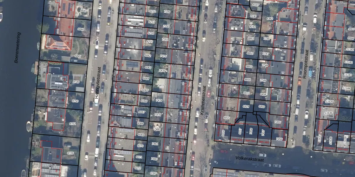 Het adres is gelegen op perceel 7477 in de sectie V en de kadastrale gemeente Amsterdam. De kadastrale aanduiding is aldus ASD18-V-7477. De gemiddelde perceelgrootte in Amsterdam is 558,8 m². Dit perceel is kleiner: de perceeloppervlakte bedraagt 187 m². De grootste perceeloppervlakte in de kadastrale gemeente is 12,5 ha. De kleinste oppervlakte bedraagt 0 m². Er zijn 7 adressen aanwezig op het perceel. In de Basisregistratie Kadaster (BRK) werden de grenzen van het perceel geregistreerd op 17-10-2006.