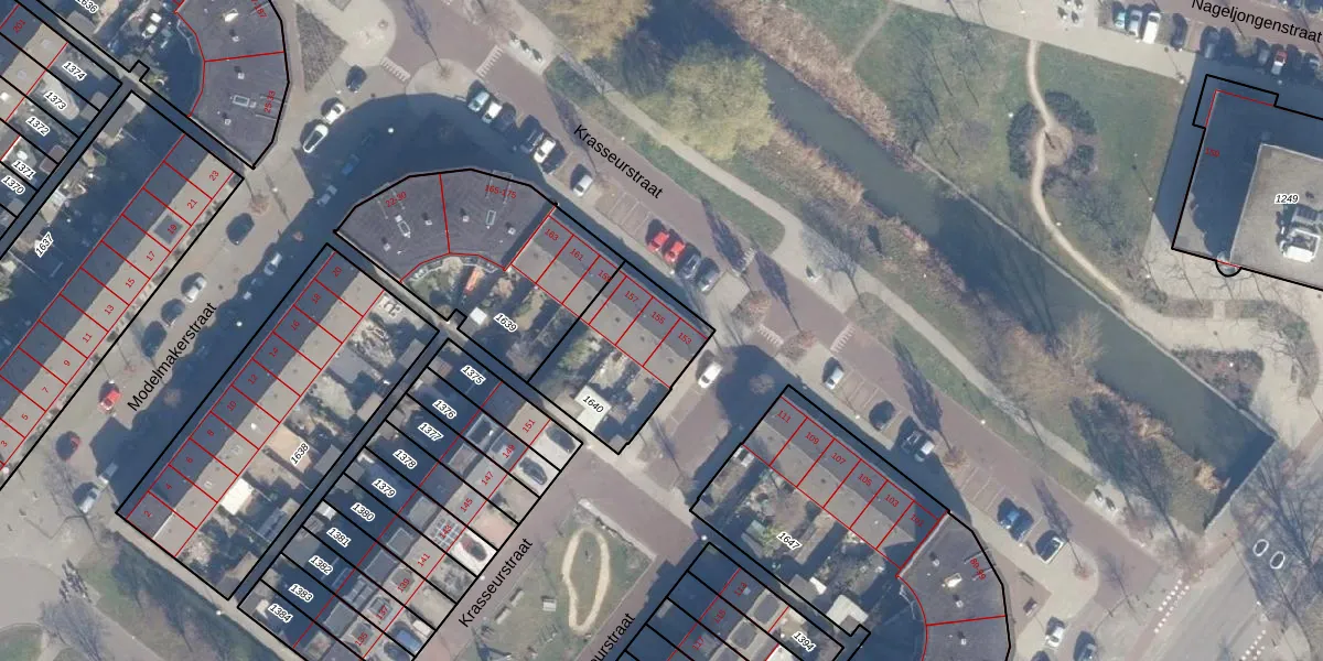 Het perceel waarop Krasseurstraat 155 staat heeft een oppervlakte van 415 m². Dit is een groot perceel. De perceeloppervlakte wordt geregistreerd door het Kadaster. Gedetailleerde informatie over de maten van dit perceel kunt u vinden in het rapport Kadastrale kaart met maatvoering van Krasseurstraat 155.