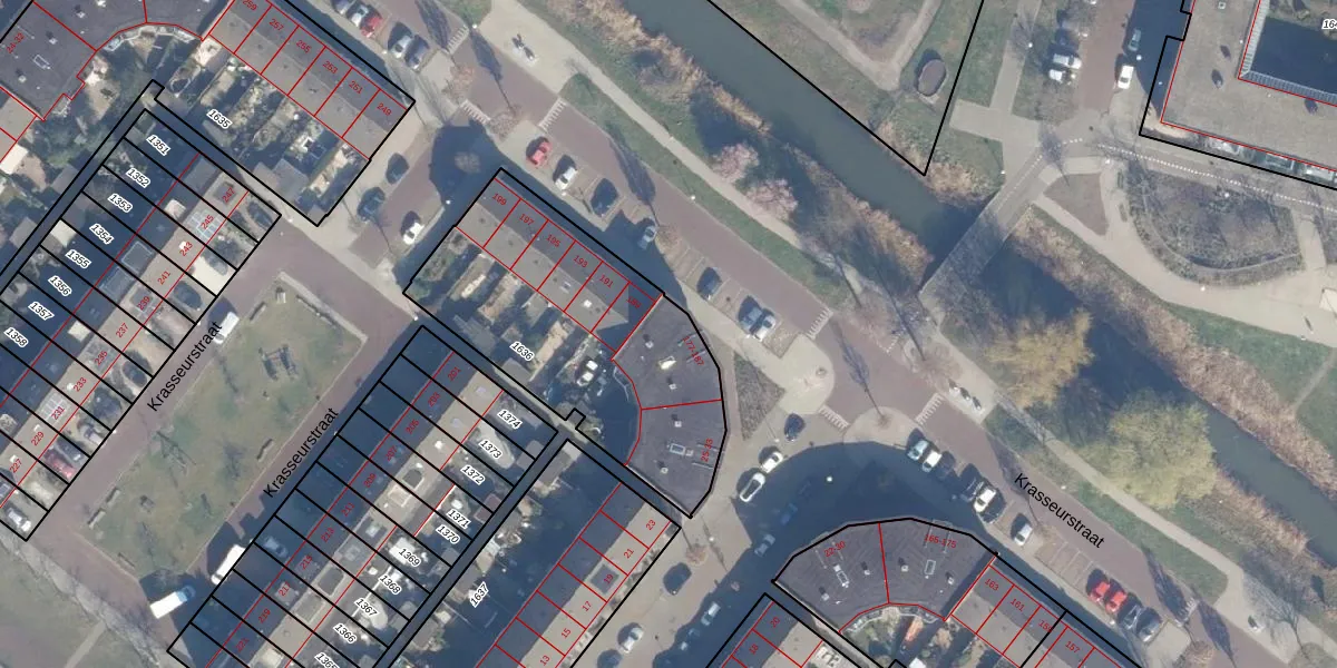 Het perceel waarop Krasseurstraat 185 staat heeft een oppervlakte van 1182 m². Dit is een zeer groot perceel. De perceeloppervlakte wordt geregistreerd door het Kadaster. Gedetailleerde informatie over de maten van dit perceel kunt u vinden in het rapport Kadastrale kaart met maatvoering van Krasseurstraat 185.