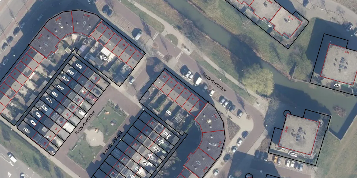 Het perceel waarop Krasseurstraat 19 staat heeft een oppervlakte van 2329 m². Dit is een zeer groot perceel. De perceeloppervlakte wordt geregistreerd door het Kadaster. Gedetailleerde informatie over de maten van dit perceel kunt u vinden in het rapport Kadastrale kaart met maatvoering van Krasseurstraat 19.