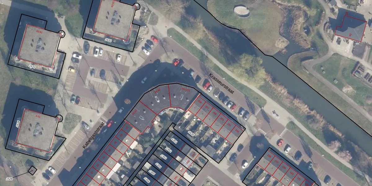 Het perceel waarop Krasseurstraat 265 staat heeft een oppervlakte van 2551 m². Dit is een zeer groot perceel. De perceeloppervlakte wordt geregistreerd door het Kadaster. Gedetailleerde informatie over de maten van dit perceel kunt u vinden in het rapport Kadastrale kaart met maatvoering van Krasseurstraat 265.