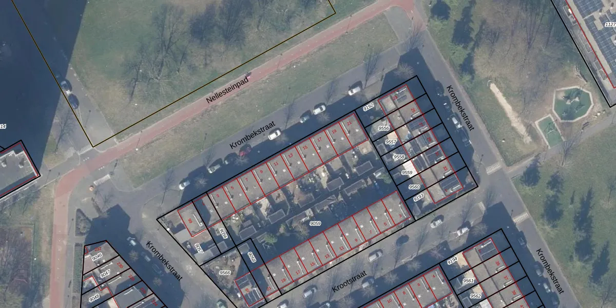 Het perceel waarop Krombekstraat 15 staat heeft een oppervlakte van 2152 m². Dit is een zeer groot perceel. De perceeloppervlakte wordt geregistreerd door het Kadaster. Gedetailleerde informatie over de maten van dit perceel kunt u vinden in het rapport Kadastrale kaart met maatvoering van Krombekstraat 15.