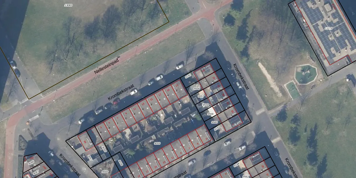 Het perceel waarop Krombekstraat 21 staat heeft een oppervlakte van 2152 m². Dit is een zeer groot perceel. De perceeloppervlakte wordt geregistreerd door het Kadaster. Gedetailleerde informatie over de maten van dit perceel kunt u vinden in het rapport Kadastrale kaart met maatvoering van Krombekstraat 21.