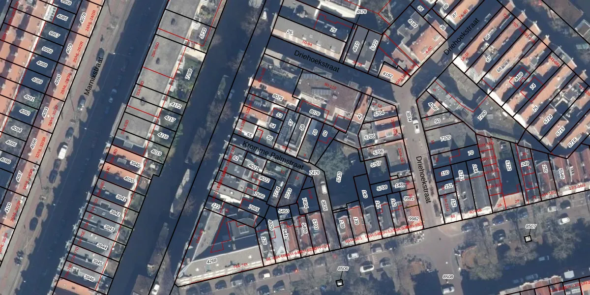 Het perceel waarop Kromme Palmstraat 5-H staat heeft een oppervlakte van 62 m². Dit is een klein perceel. De perceeloppervlakte wordt geregistreerd door het Kadaster. Gedetailleerde informatie over de maten van dit perceel kunt u vinden in het rapport Kadastrale kaart met maatvoering van Kromme Palmstraat 5-H.