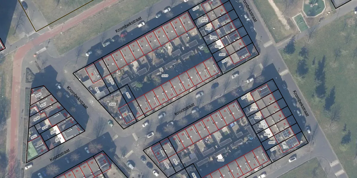 Het perceel waarop Krootstraat 11 staat heeft een oppervlakte van 2152 m². Dit is een zeer groot perceel. De perceeloppervlakte wordt geregistreerd door het Kadaster. Gedetailleerde informatie over de maten van dit perceel kunt u vinden in het rapport Kadastrale kaart met maatvoering van Krootstraat 11.