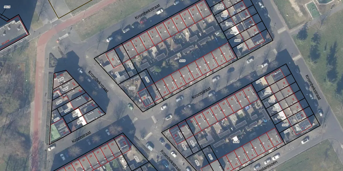 Het perceel waarop Krootstraat 17 staat heeft een oppervlakte van 2152 m². Dit is een zeer groot perceel. De perceeloppervlakte wordt geregistreerd door het Kadaster. Gedetailleerde informatie over de maten van dit perceel kunt u vinden in het rapport Kadastrale kaart met maatvoering van Krootstraat 17.
